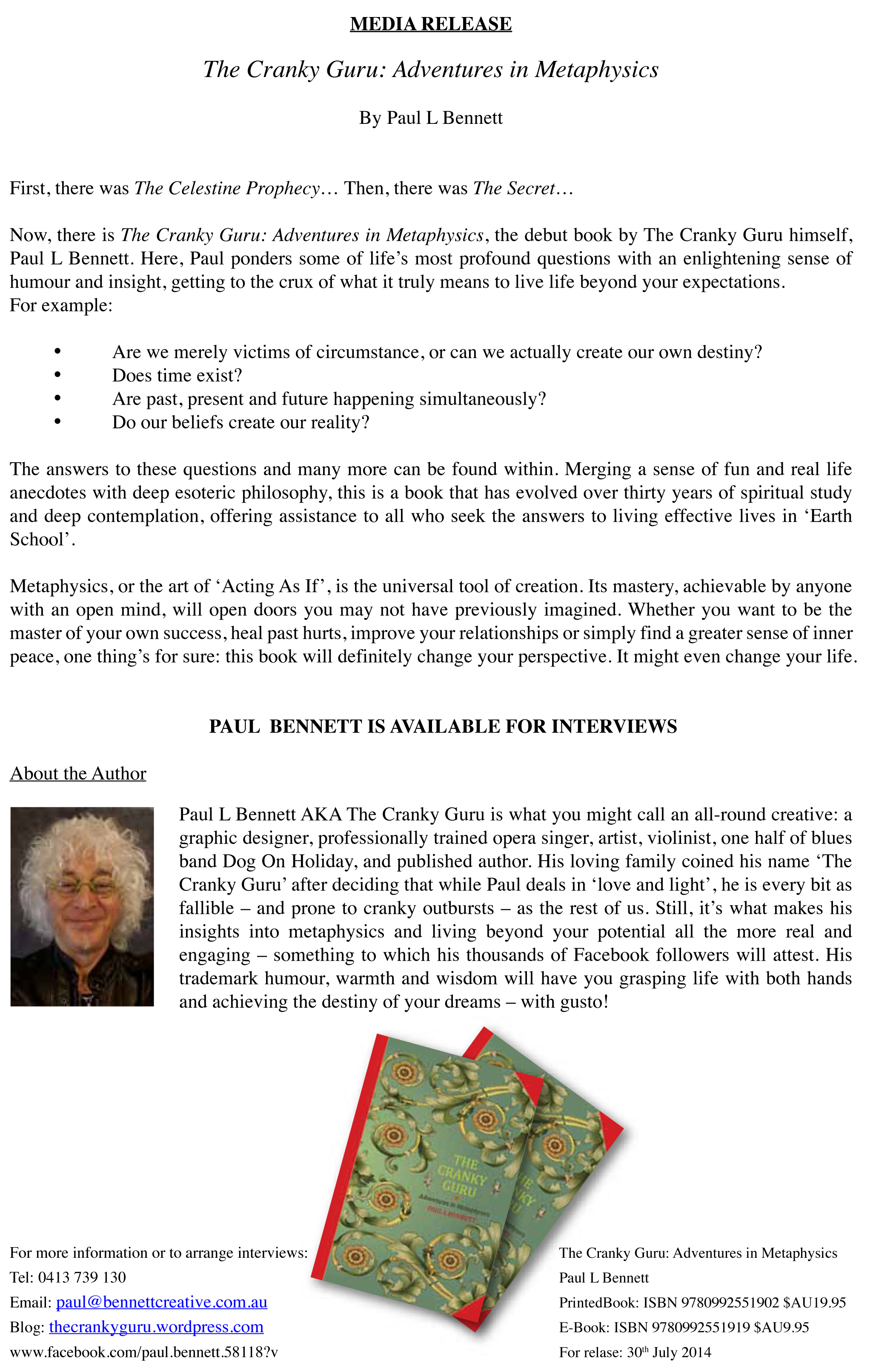 The launch of The Cranky Guru – Adventures in Metaphysics is now just two weeks away! Please let me know if you are coming so I can arrange catering. By our launch date on 30th July at Berkelouw Books 19 Oxford Street Paddington, we will have a link on this page so you can purchase both the printed book at $19.95 (plus postage) and the ebook at just $9.95. Can’t wait to share my spiritual journey with everyone! PLEASE SEND ME A MESSAGE IF YOU’RE COMING!